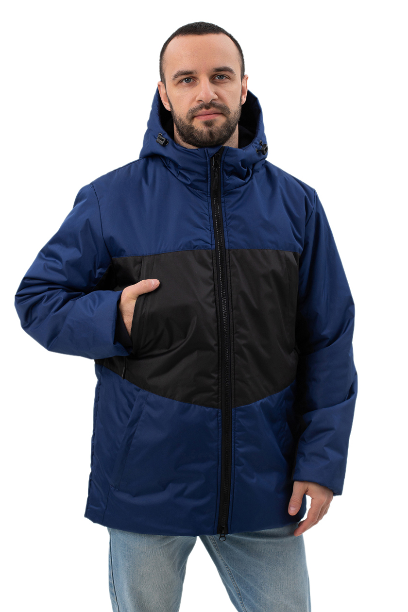 Куртка мужская демисезонная синяя прямого силуэта с утеплённой подкладкой.